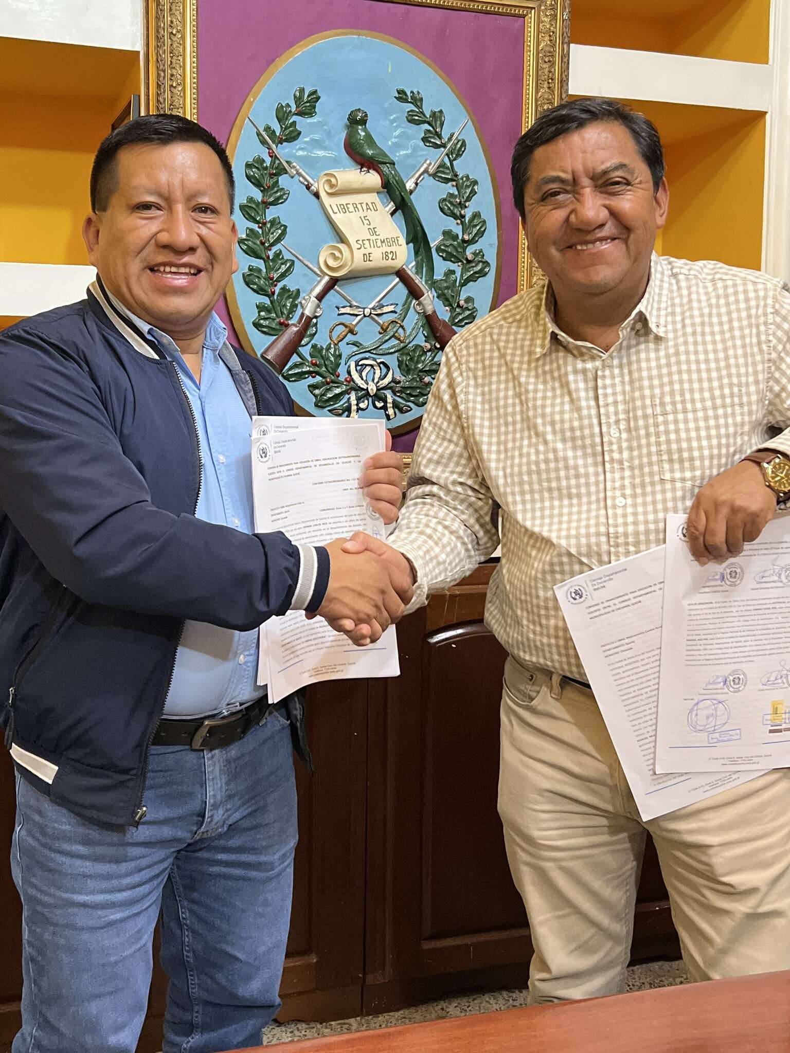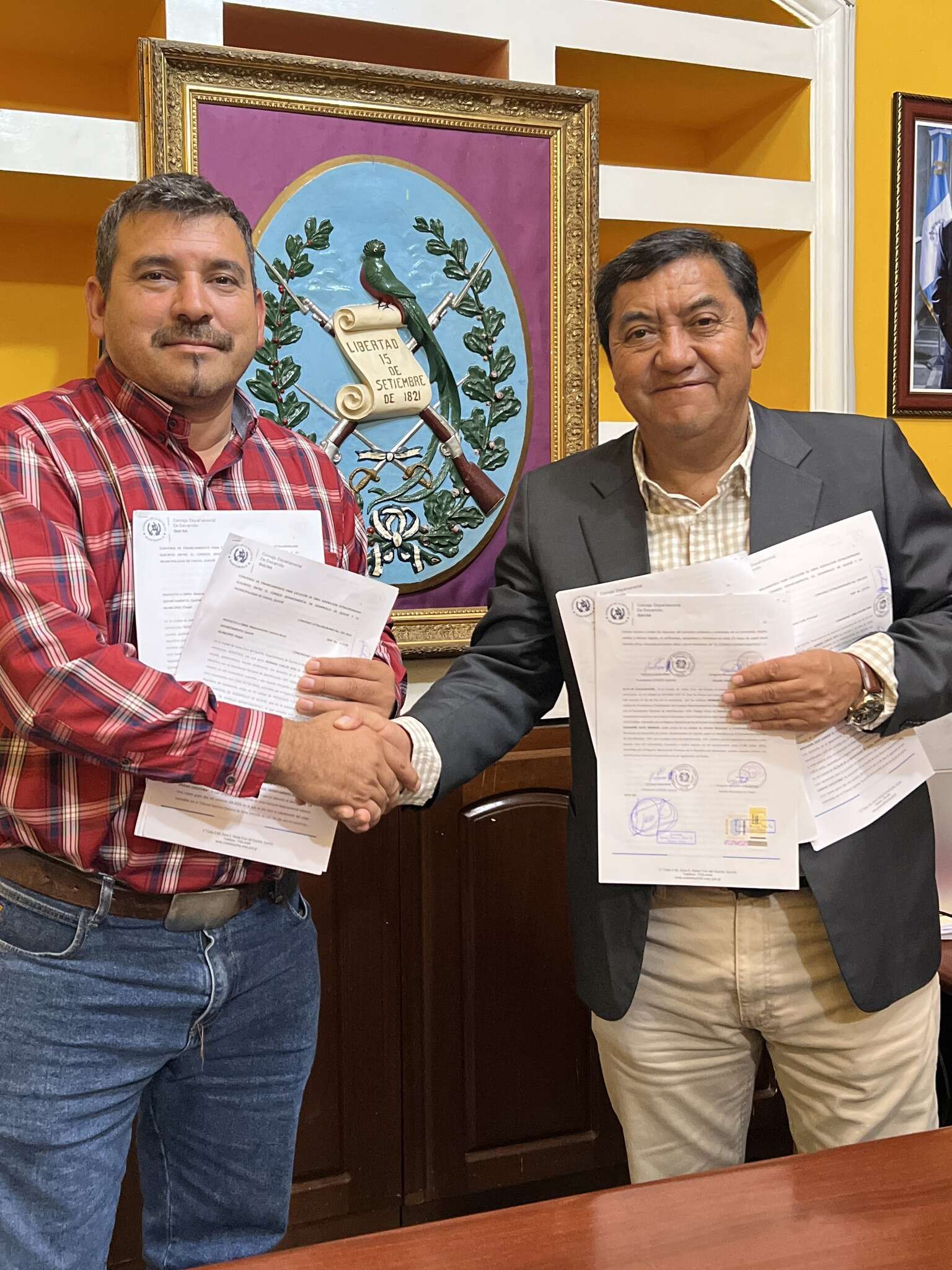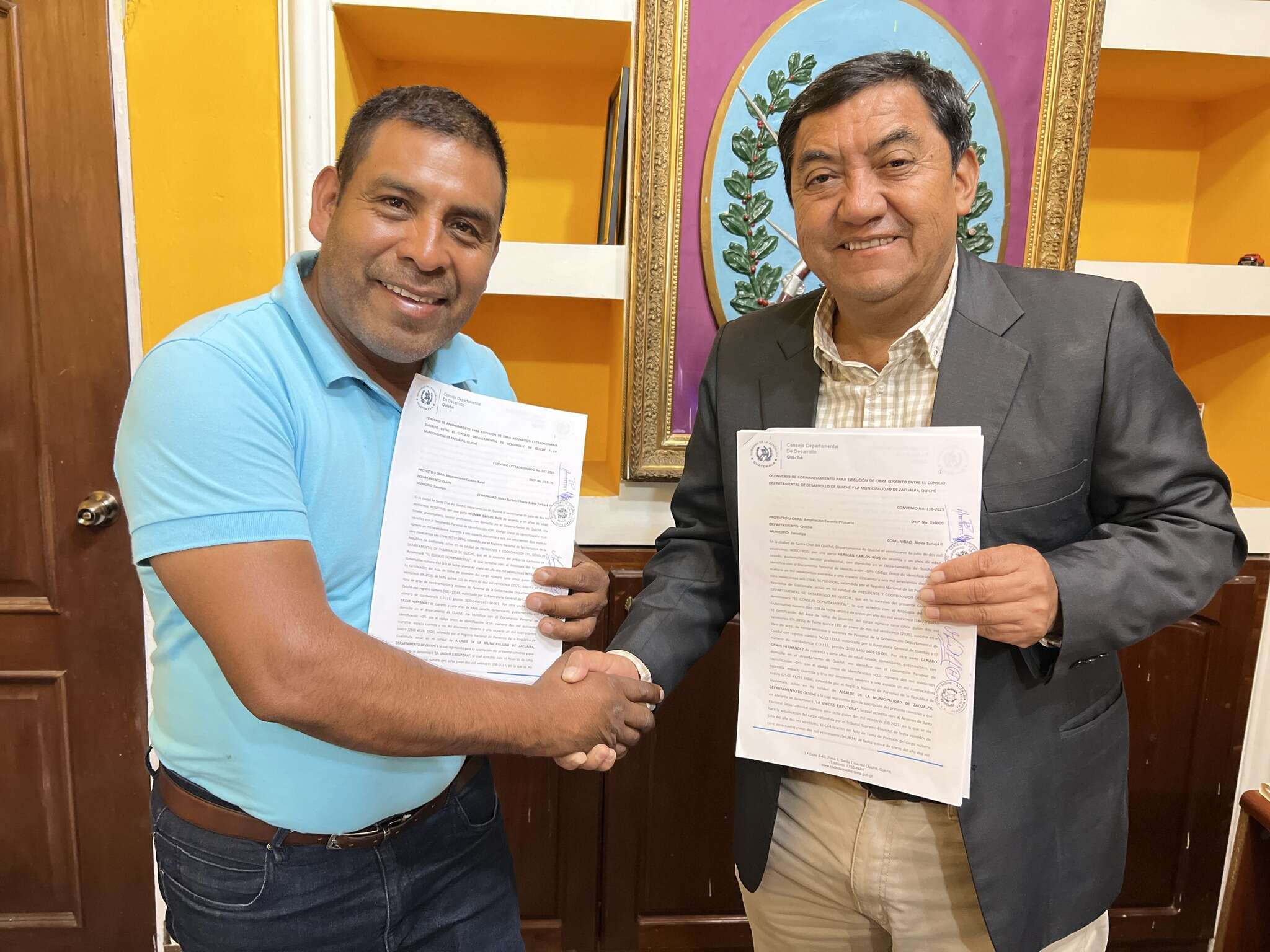 El Gobernador de Quiché, Herman Carlos Ríos, en su calidad de Presidente del Consejo Departamental de Desarrollo -CODEDE- procedió a la firma de convenios con alcaldes de cinco municipios para la ejecución de 23 proyectos de infraestructura y desarrollo. La firma, realizada en días recientes, formaliza la asignación de fondos para iniciativas que beneficiarán directamente a las comunidades del departamento.