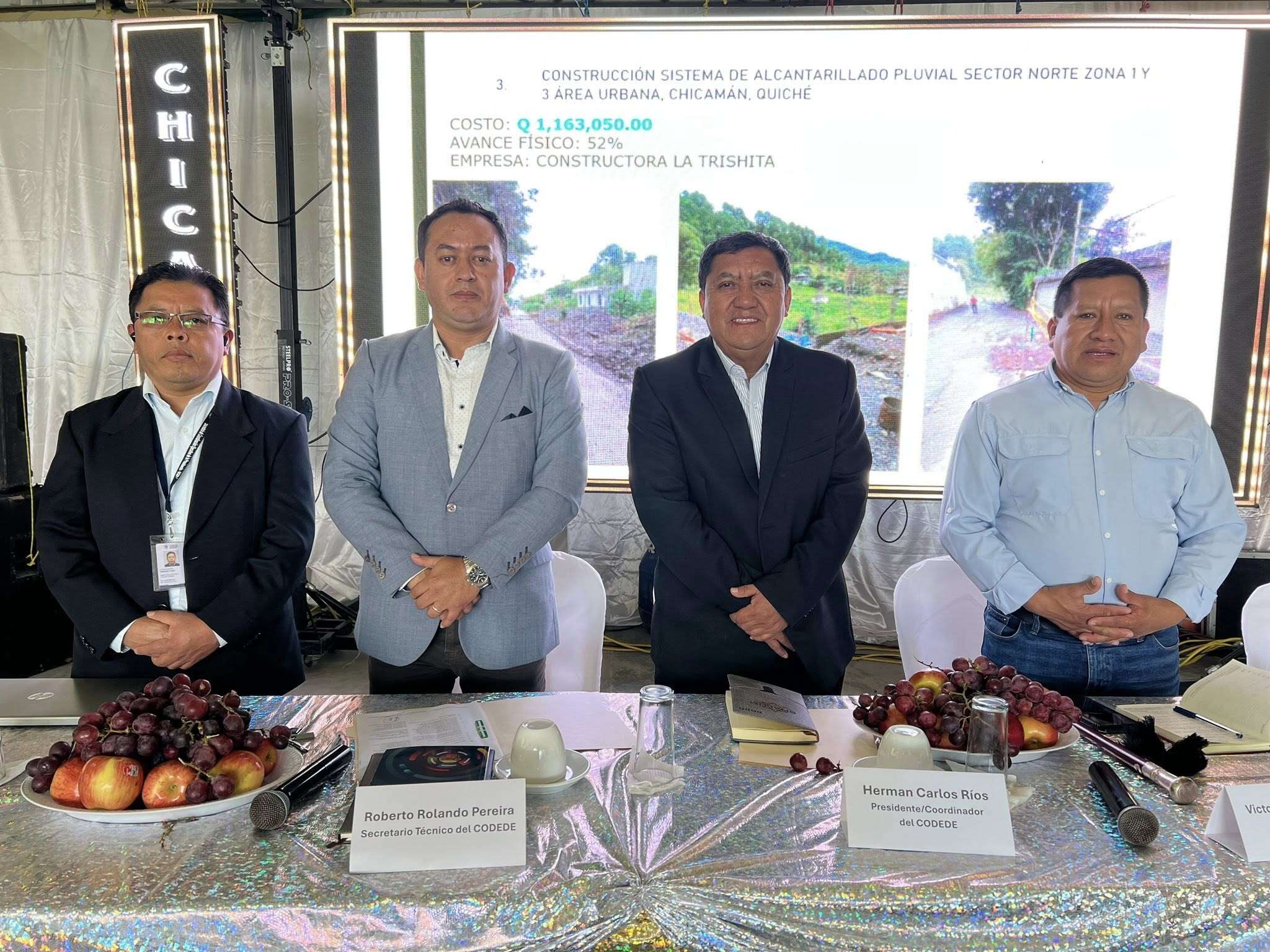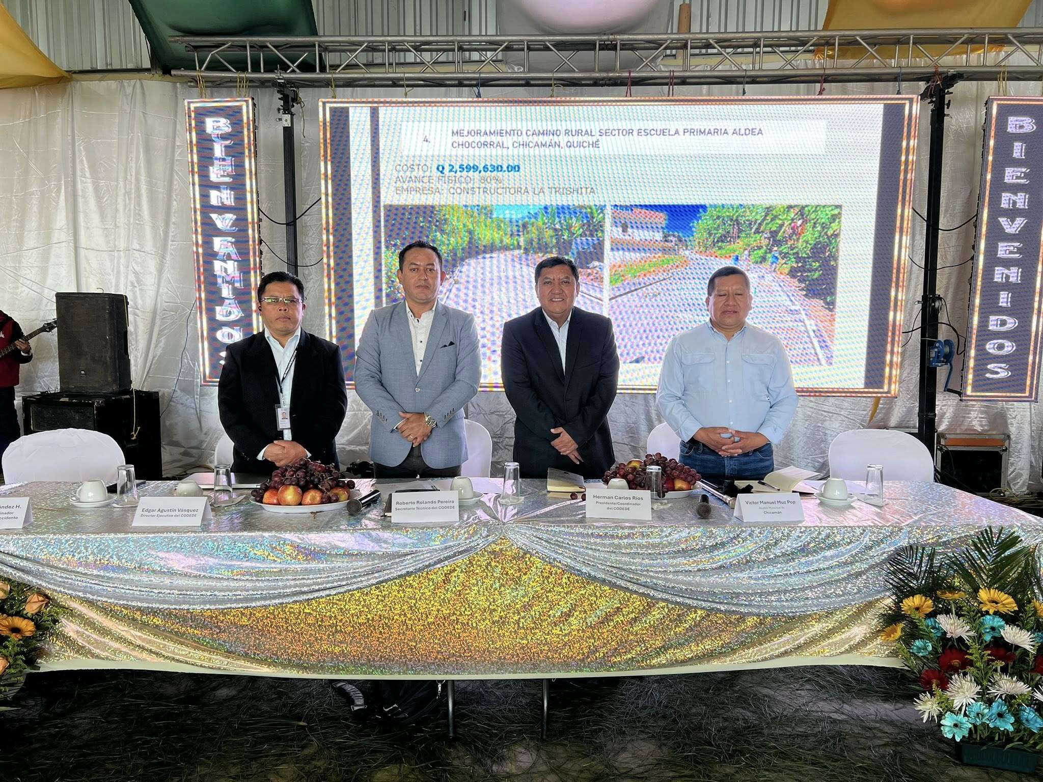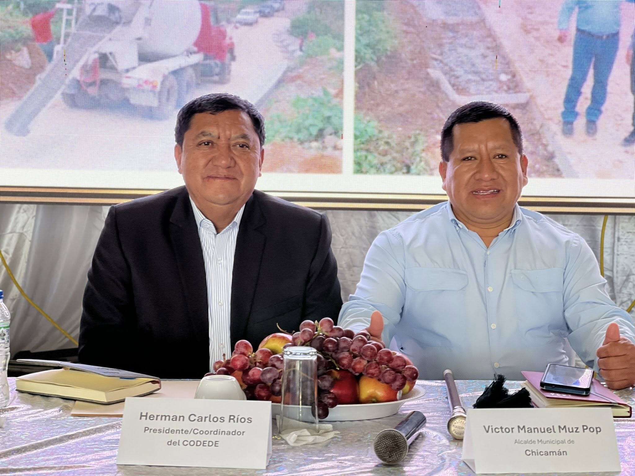 Da inicio en el municipio de Chicamán, la Primera Sesión del Consejo Departamental de Desarrollo -CODEDE- Quiché, presidida por el Gobernador Herman Carlos Ríos, acompañado por el Alcalde anfitrión Víctor Manuel Muz Pop, Edgar Vásquez director ejecutivo del CODEDE y Roberto Pereira Noriega secretario técnico del CODEDE.