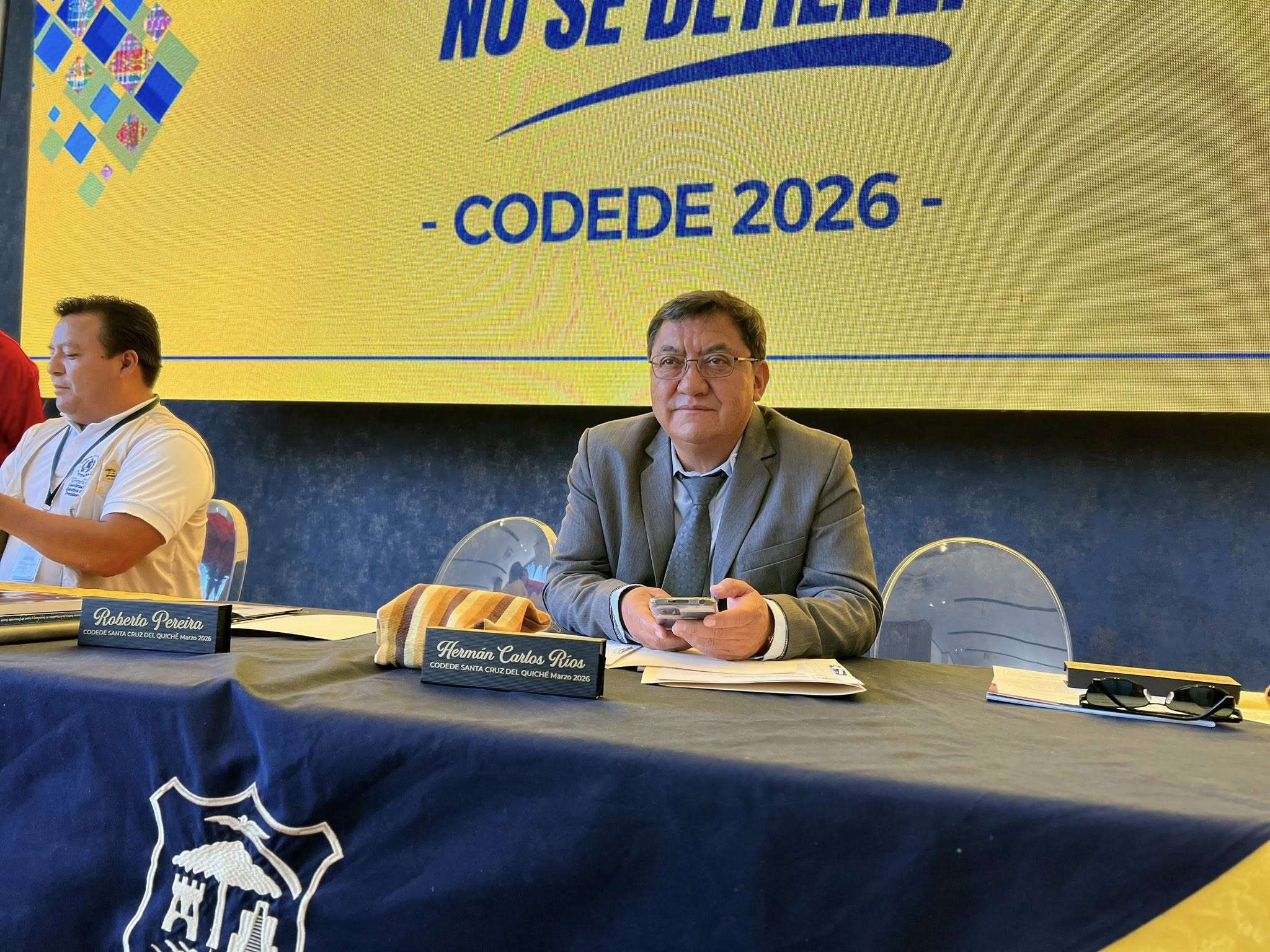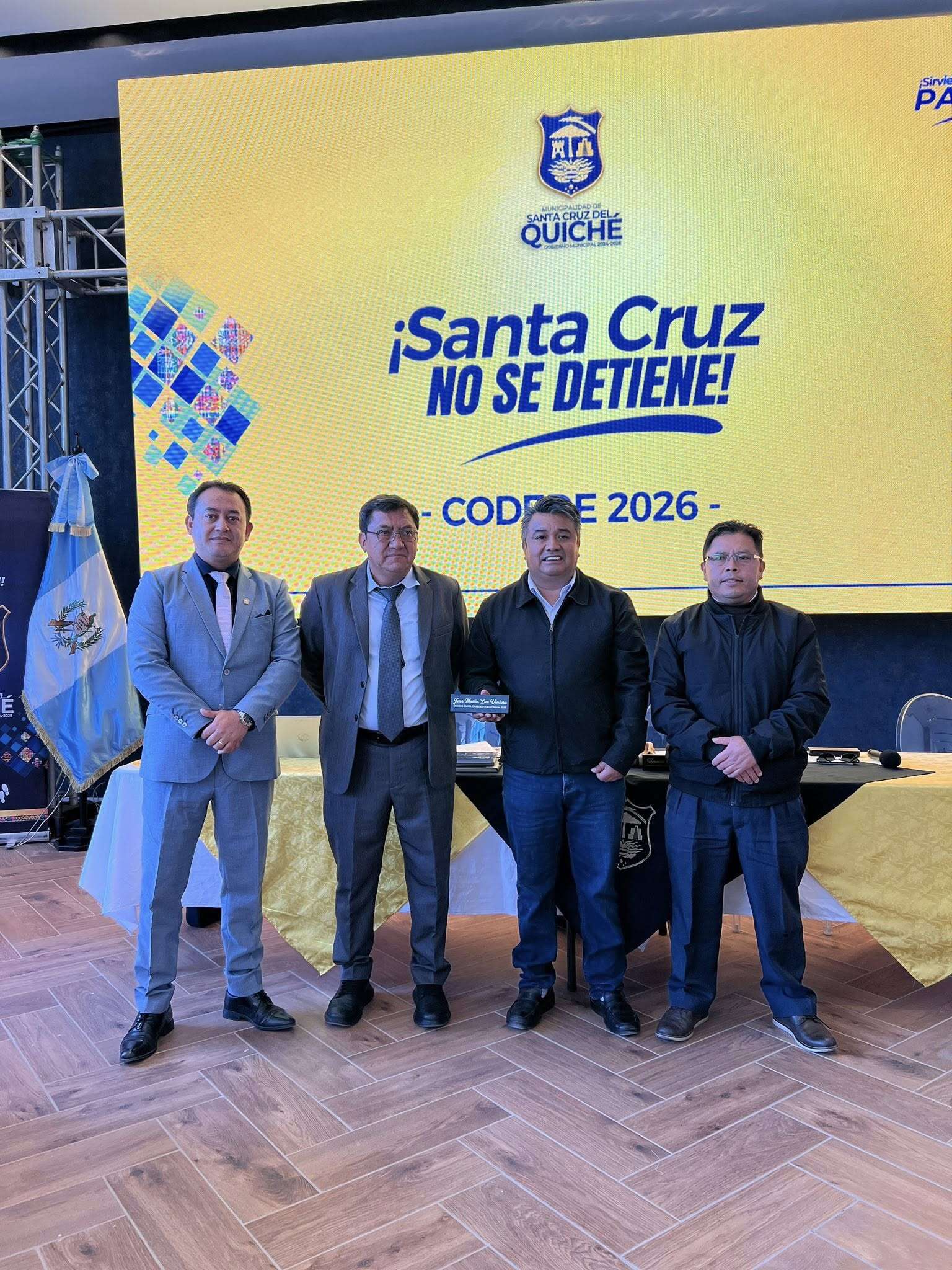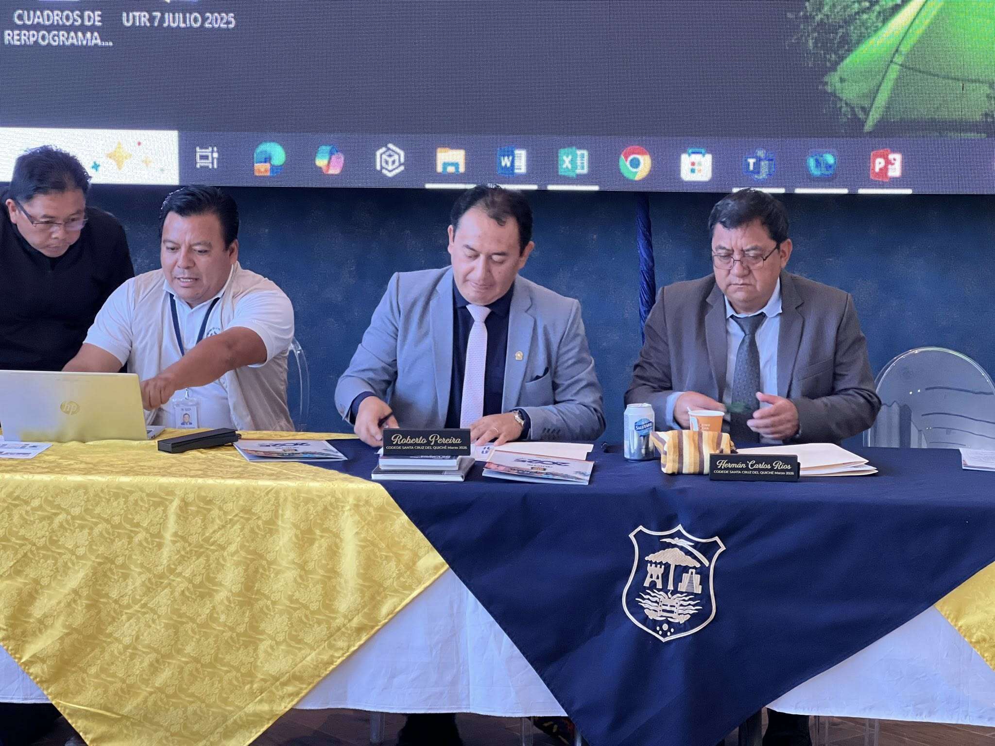 Cuarta Sesión Ordinaria del Consejo Departamental de Desarrollo-CODEDE- Quiché presidida por el Gobernador Herman Carlos Ríos, acompañado por el Alcalde anfitrión Nery Ramírez, Edgar Vásquez Tuch director ejecutivo del CODEDE, Roberto Pereira Noriega secretario técnico del CODEDE y Jorge Luis Hernández presidente del Consejo Regional de Desarrollo Urbano y Rural -COREDUR- Noroccidente Región VII.